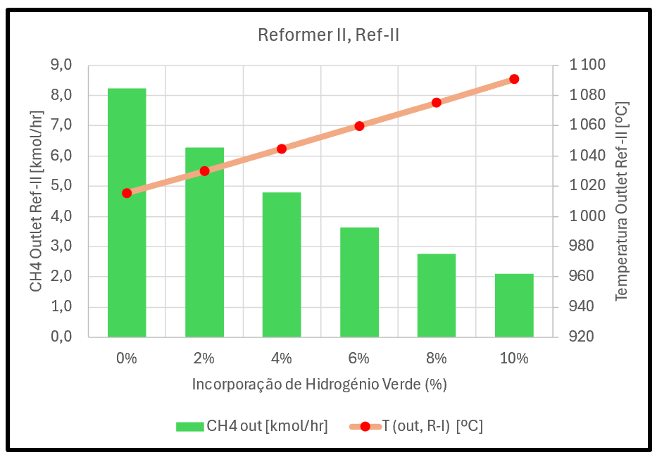 ![]() | Até que ponto é possível suportar:▼ a redução da quantidade de CH4 que abandona o Reformer II?▲ o aumento da temperatura do efluente do Reformer II? |